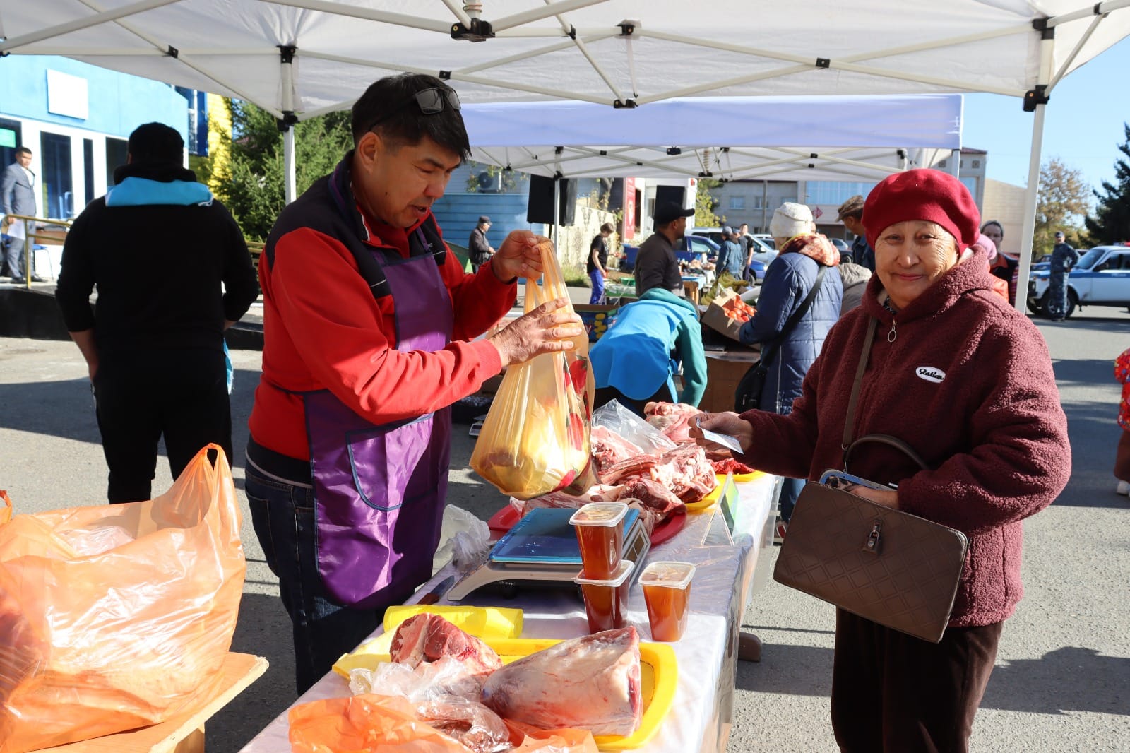 Здесь же велась торговля свежим хлебом и тандырными лепешками, выпечкой, готовыми салатами, шашлыками. Приятно, что на ярмарке выставили свою продукцию и участники безвозмездных грантов, предоставленных, например, Екатерине Ларионовой (Лобаново) и Жансае Нұрқожа (Имантау) для развития предпринимательской инициативы.